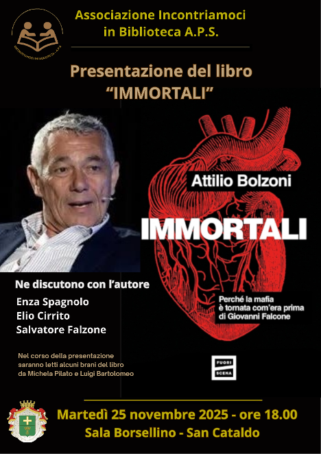 Eventi“Immortali” di Attilio Bolzoni si presenta a San Cataldo il 25 novembre Ultimo aggiornamento: Novembre 22, 2025 8:41 am fiorellafalci 165 Views Condividere CONDIVIDERE TAGGED:Attilio BolzoniElio CirritoEnza SpagnoloLuigi BartolomeoMichela Pilatosalvatore falzone Condividi Questo Articolo Facebook Twitter Whatsapp Whatsapp Copy Link Print