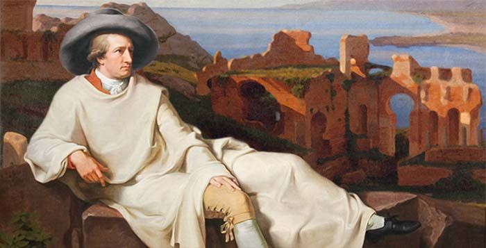 Herr Goethe lei è stato uno dei grandi protagonisti di quello che oggi è conosciuto come il Grand Tour. Un lungo viaggio formativo per l’Europa, soprattutto in Italia, intrapreso dai giovani aristocratici tra il Settecento e l’Ottocento per perfezionare la propria educazione culturale, artistica e storica. Recarsi sui luoghi della civiltà classica, visitando monumenti, musei e rovine, per conoscere lingue, modi e costumi del mondo classico era un rito di formazione cui i giovani dell’antica aristocrazia non potevano sottrarsi.