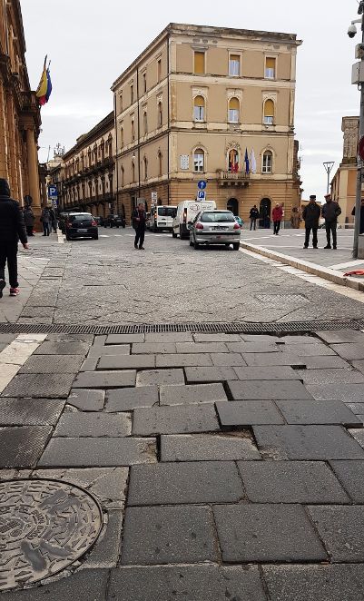 Nei giorni scorsi, in corso Vittorio Emanuele, ho fatto le foto che pubblico. C’è davvero poco da dire. Potremmo comunque aggiungere che dal gennaio del 2015, ovvero da quando fu realizzata la nuova, disastrosa pavimentazione stradale in mattoni di conglomerato lavico (non nelle tradizionali basole in pietra lavica) molteplici volte è stato tentato di far fronte al danno, e ai conseguenti disagi per i cittadini, con interventi di manutenzione. Pannicelli caldi. La situazione è solo peggiorata. Diciamocelo chiaramente: la pavimentazione è da rifare! Ex novo.