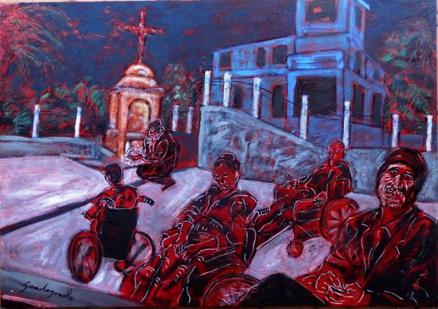 Per il 3 dicembre 2025, in occasione della Giornata Internazionale delle Persone con Disabilità, indetta dall’ONU, Guadagnuolo restituisce quella memoria in una tela. I colori non sono semplici pigmenti: sono voci.