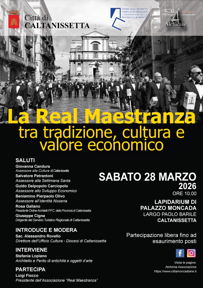 La Real Maestranza tra tradizione, cultura e valore economico” è il titolo del convegno organizzato dall’associazione Alchimia con il patrocinio dell’Ordine degli Architetti Pianificatori Paesaggisti Conservatori della Provincia di Caltanissetta e del Comune di Caltanissetta.