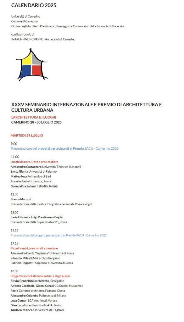 L’Ordine degli Architetti Pianificatori, Paesaggisti e Conservatori della provincia di Caltanissetta comunica con grande compiacimento che i colleghi della CGstudio cardinalegeraci architetti e della So.Lab Nicola Sola architetto, hanno ricevuto importanti riconoscimenti nel corso del XXXV Seminario Internazionale e Premio di Architettura e Cultura Urbana di Camerino, avente per tema “L’Architettura e i Luoghi“.