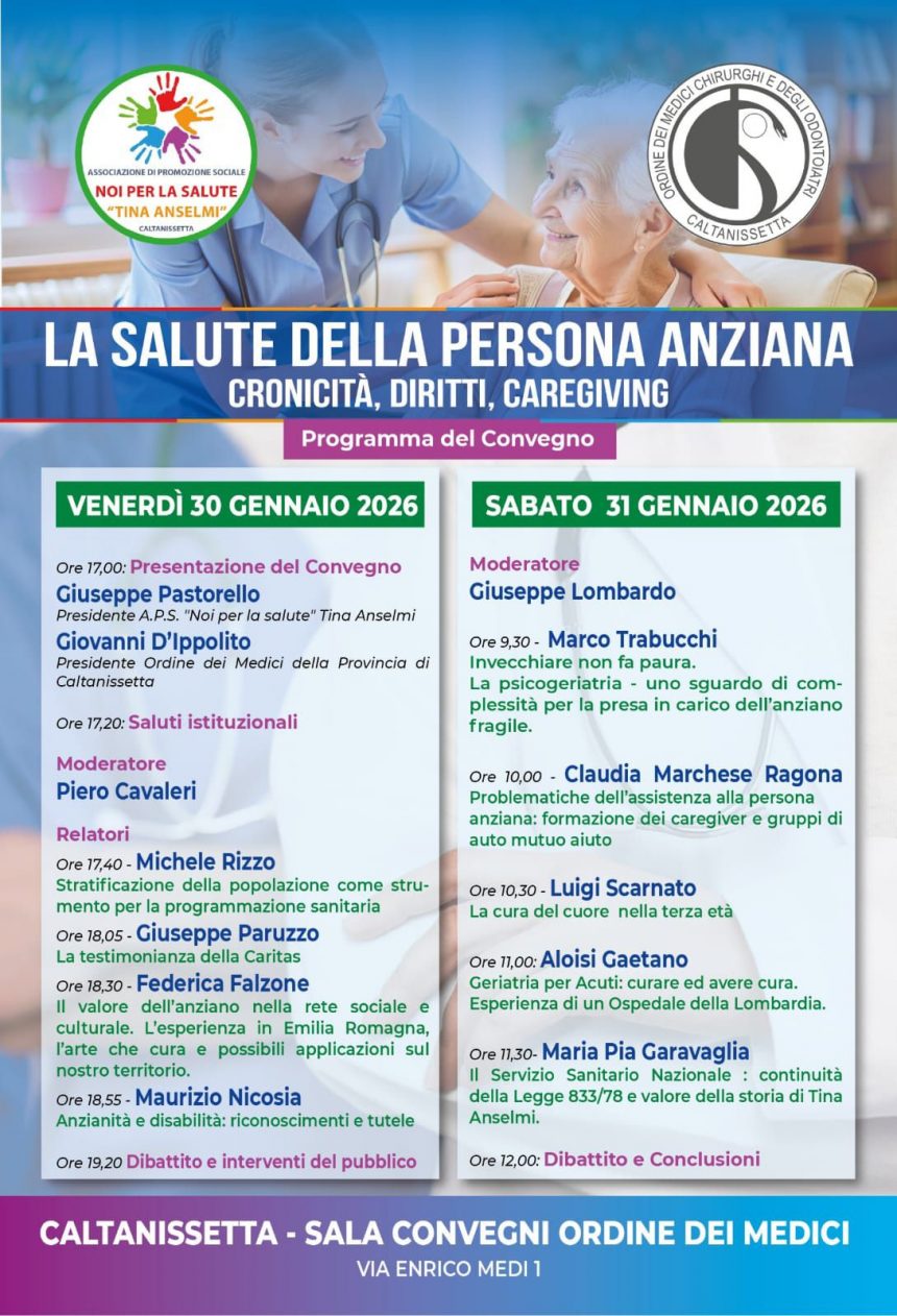 “La salute della persona anziana” Convegno il 30 e 31 gennaio a Caltanissetta