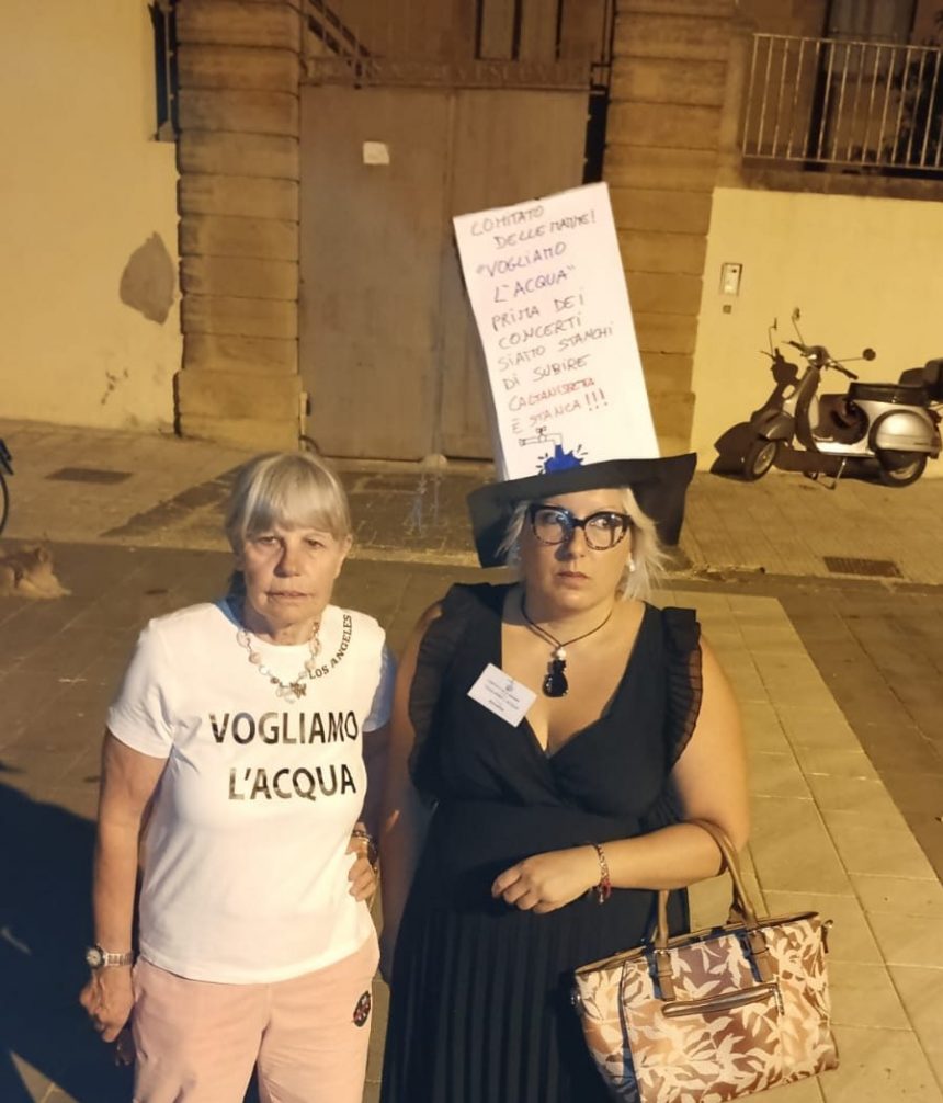 Le Mamme del Comitato per l’acqua hanno partecipato al concerto con i segni della loro protesta pacifica: magliette con la scritta “Vogliamo l’acqua” e cartelli che raccontano la contraddizione tra la temperatura torrida, 40 gradi e la mancanza di acqua per le continue interruzioni della distribuzione da parte di Siciliacque per le condutture senza adeguata manutenzione, proprio quando l’acqua nelle dighe c’è e non ci sono alibi legati alla siccità, come lo scorso anno.