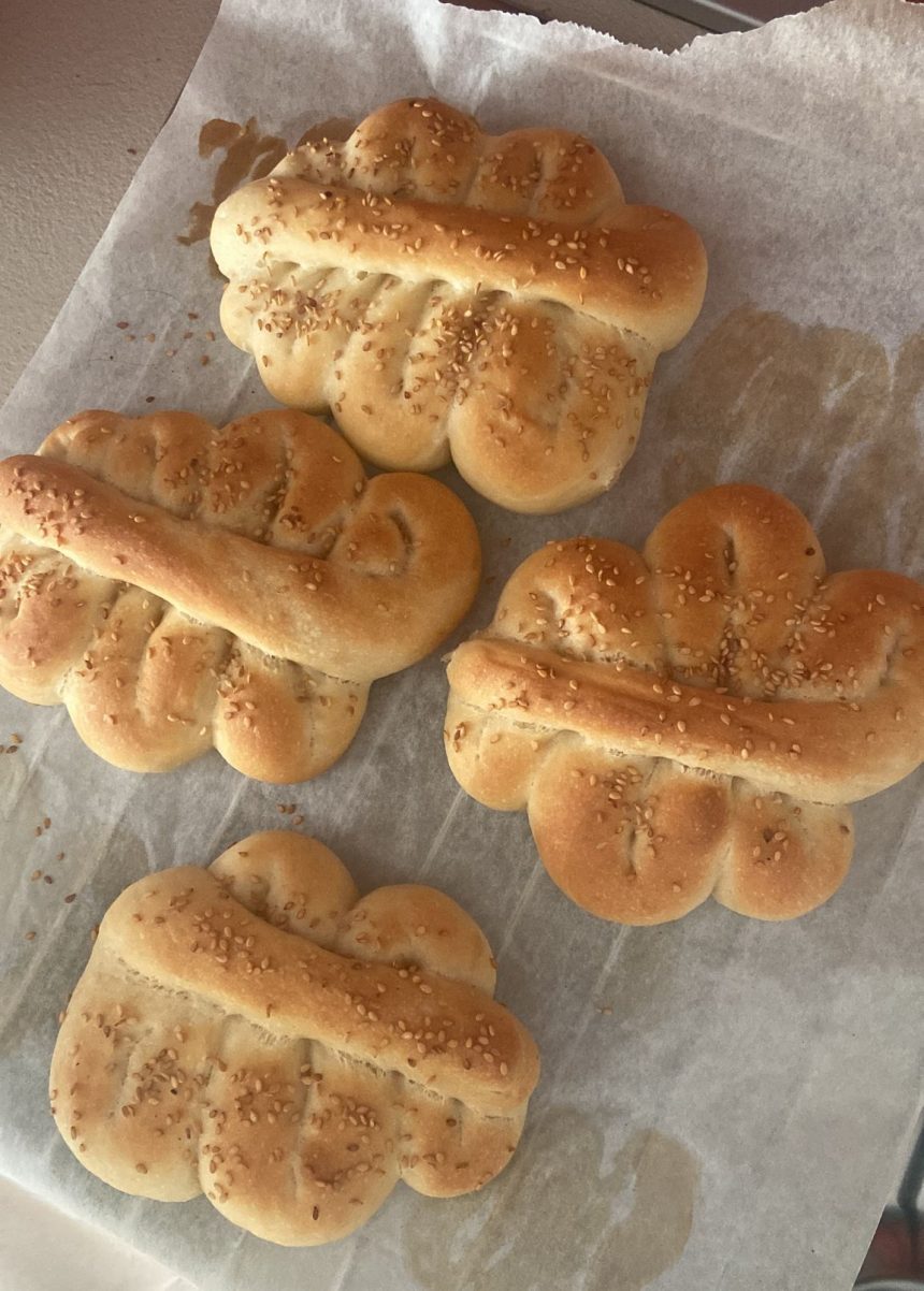 Mettere in una teglia, spennellare con acqua la superficie e cospargerla di semi di sesamo