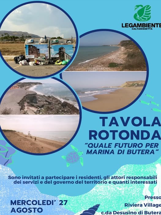 Mercoledì 27 agosto, alle ore 17, Legambiente Caltanissetta ha organizzato un incontro pubblico, presso il Riviera Village di C.da Desusino, dal titolo “Quale futuro per Marina di Butera”.
