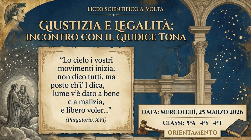 In uno specialissimo Dantedì, mercoledì 25 marzo 2026, presso la Biblioteca dell’I.I.S.S “A.Volta” di Caltanissetta, gli studenti delle classi VA, IVS e IVT hanno incontrato il giudice Giovanbattista Tona.