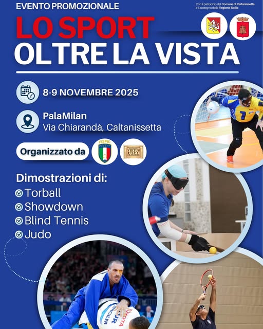 La forza dello sport è in grado di abbattere ogni barriera o limite e costituisce un’opportunità di integrazione, crescita personale e benessere aperta a tutti. Un messaggio chiaro e universale che sarà ribadito dall’evento “Lo Sport oltre la vista”, in programma sabato 8 novembre e domenica 9 novembre a partire dalle ore 09:00 al PalaMilan di Caltanissetta.