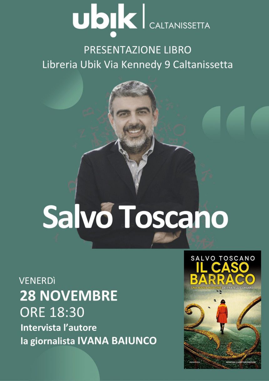 Ivana Baiunco intervista Salvo Toscano sul suo ultimo libro, “Il caso Barraco” (Newton Compton Editore), venerdì 28 novembre alle 18,30 alla Libreria Ubik di Caltanissetta.