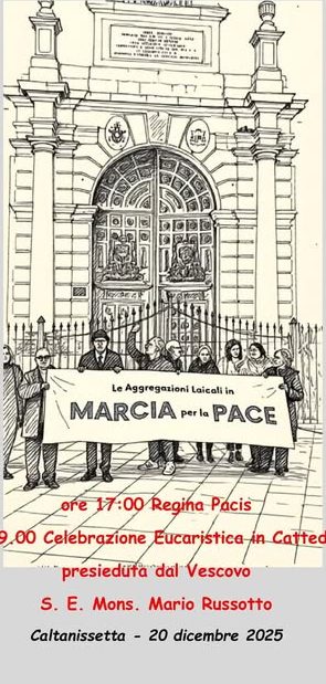 Le Aggregazioni Laicali diocesane, associazioni, movimenti, unioni di laici, riunite nella Consulta delle Aggregazioni Laicali, animeranno sabato 20 dicembre un pomeriggio di impegno per la pace, con una marcia attraverso le vie di Caltanissetta.