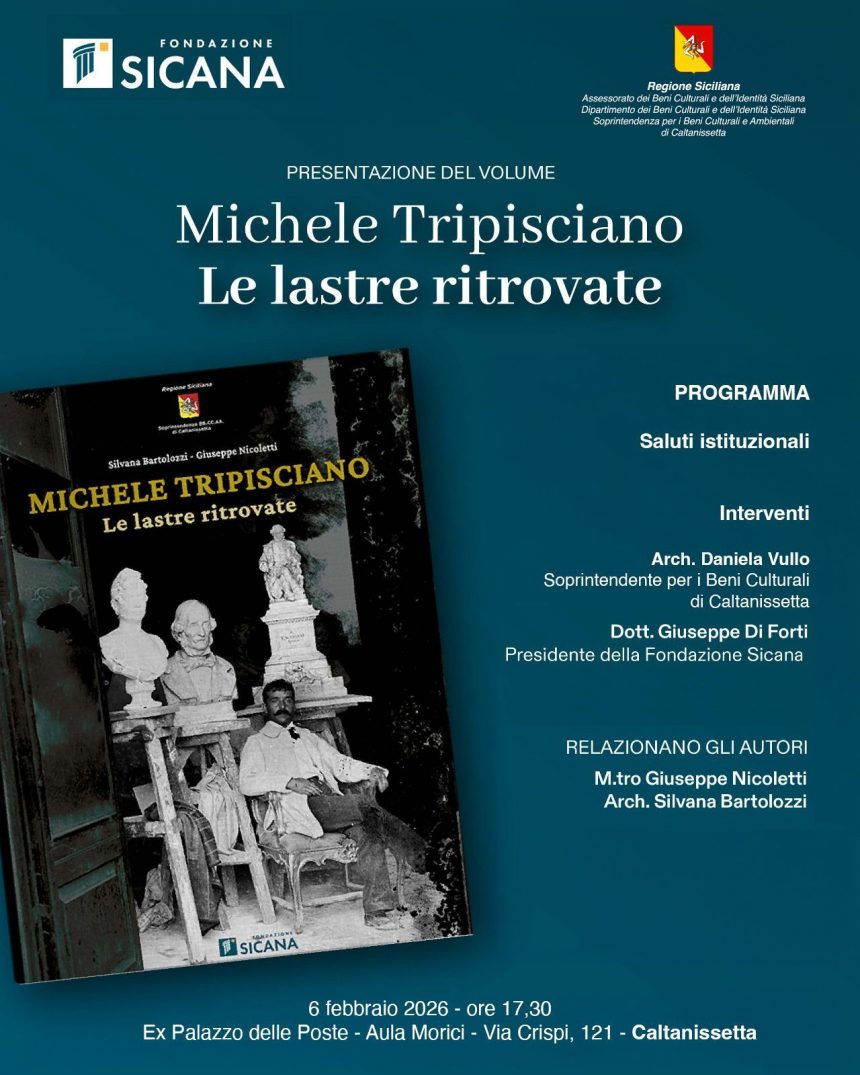 Un corpus fotografico inedito di Michele Tripisciano, analizzato filologicamente e criticamente da Silvana Bartolozzi e Giuseppe Nicoletti, con una ricchissima ricerca archivistica e bibliografica, pubblicato nel volume “Michele Tripisciano. Le lastre ritrovate” a cura della Fondazione Sicana, si presenta a Caltanissetta venerdì 6 febbraio alle 17,30, nella Sala Morici di Sicilbanca, in collaborazione con la Soprintendenza ai BB.CC.AA di Caltanissetta.