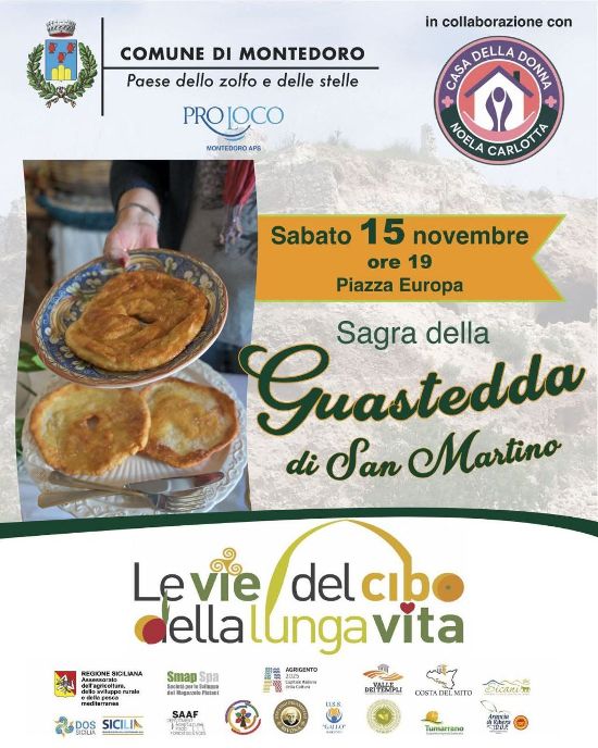 Il Comune di Montedoro, in collaborazione con la Pro Loco di Montedoro e l’associazione Noela Carlotta, organizza la Sagra della Guastedda di San Martino, in programma sabato 15 novembre alle ore 19.00 in Piazza Europa..