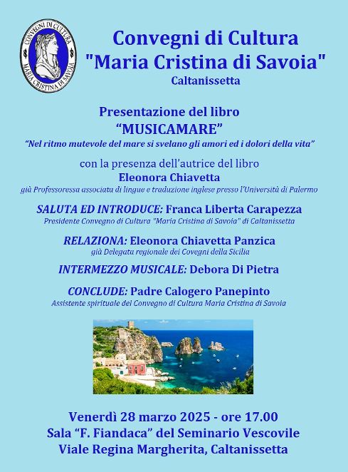 Eventi“Musicamare” presentazione del libro di Eleonora Chiavetta, venerdì 28 marzo ore 17, sala Fiandaca del Museo Diocesano Ultimo aggiornamento: Marzo 25, 2025 8:41 pm redazione 176 Views Condividere CONDIVIDERE TAGGED:Debora Di PietraEleonora ChiavettaFranca Liberta Carapezzapadre Calogero Panepinto Condividi Questo Articolo Facebook Twitter Whatsapp Whatsapp Copy Link Print