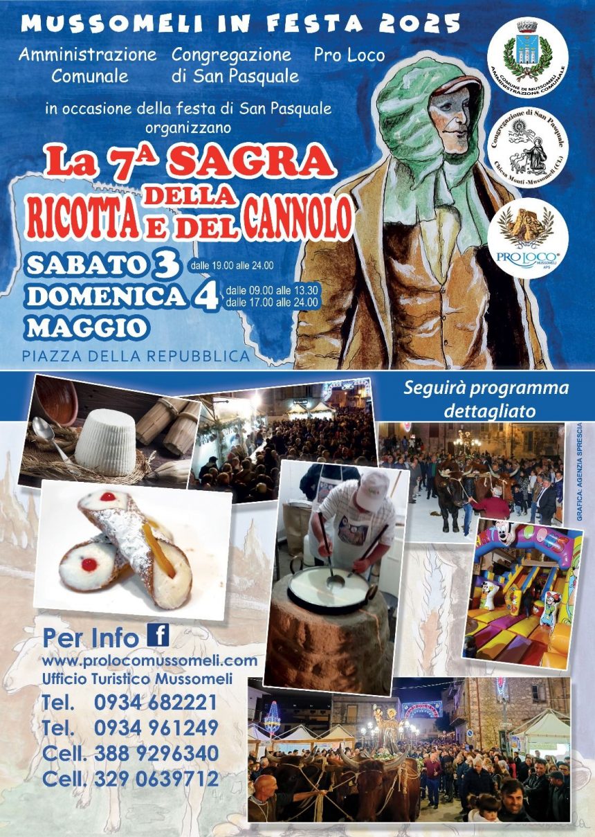 EventiMussomeli: 3 e 4 maggio, Sagra della ricotta e del cannolo per la festa di San Pasquale protettore dei pastori Ultimo aggiornamento: Aprile 30, 2025 2:15 pm redazione 226 Views Condividere CONDIVIDERE Condividi Questo Articolo Facebook Twitter Whatsapp Whatsapp Copy Link Print