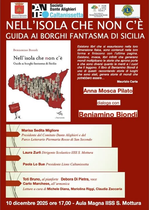 Uno studio socio-antropologico si grande interesse, “Nell’isola che non c’è. Guida ai borghi fantasma di Sicilia” di Beniamino Biondi, che si presenta a Caltanissetta mercoledì 10 dicembre alle 17 nell’Aula Magna dell’Istituto “Mottura”.