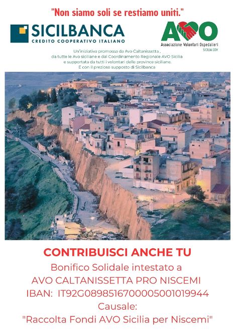 * Causale: “Raccolta Fondi AVO Sicilia per Niscemi“