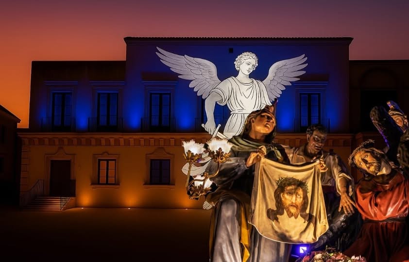Sul piazzale di Largo Barile troveranno posto due simboli forti della tradizione: la Vara della Scinnenza, la Deposizione, e la Vara della Veronica. A renderle ancora più suggestive sarà l’illuminazione scenografica del prospetto di Palazzo Moncada, firmata da Marco Tuminelli. Accanto a loro saranno collocate anche alcune varicedde dell’Associazione Piccoli Gruppi Sacri, a testimonianza di una tradizione che continua a rigenerarsi.