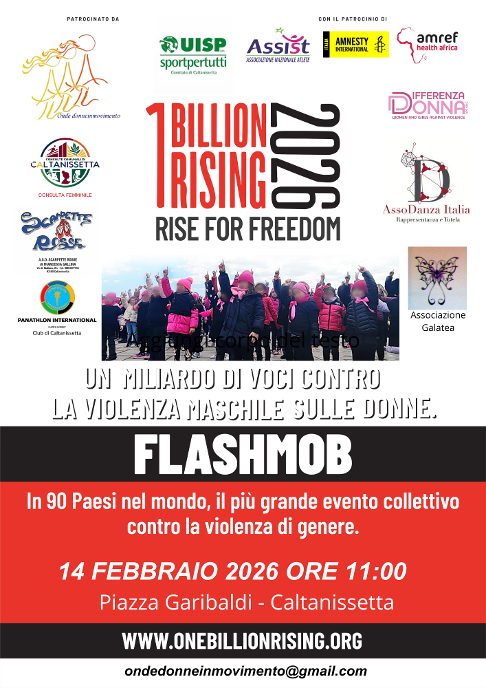 ONE BILLION RISING 2026 Flash mob contro la violenza maschile sulle donne 14 febbraio 2026 – ore 11.00 – Piazza Garibaldi, Caltanissetta