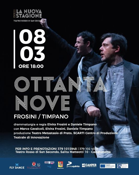 Un grande appuntamento culturale al Teatro Rosso di San Secondo per la Nuova Stagione diretta da Aldo Rapè, con una tra le compagnie di prosa più apprezzate a livello nazionale ed internazionale e con diversi premi per questo meraviglioso spettacolo OTTANTANOVE , vincitore Premio UBU 2022 come Miglior nuovo testo italiano e come Miglior attore a Marco Cavalcoli.