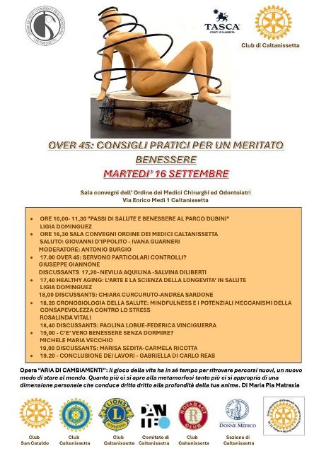 Il Lions Club Caltanissetta, presieduto da Paola Lobue, aderisce, in co-partecipazione ad altre associazioni, alla giornata interamente dedicata alla salute e al benessere nella fase della vita che segue i 45 anni, organizzata per martedì 16 settembre. Un evento che intreccia scienza, prevenzione e consapevolezza, con la partecipazione di medici, esperti e professionisti della salute.