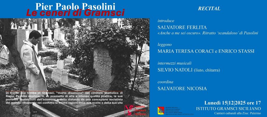 Di fronte alla tomba di Gramsci, “morto disadorno” nel cimitero acattolico di Roma, Pasolini esprime,