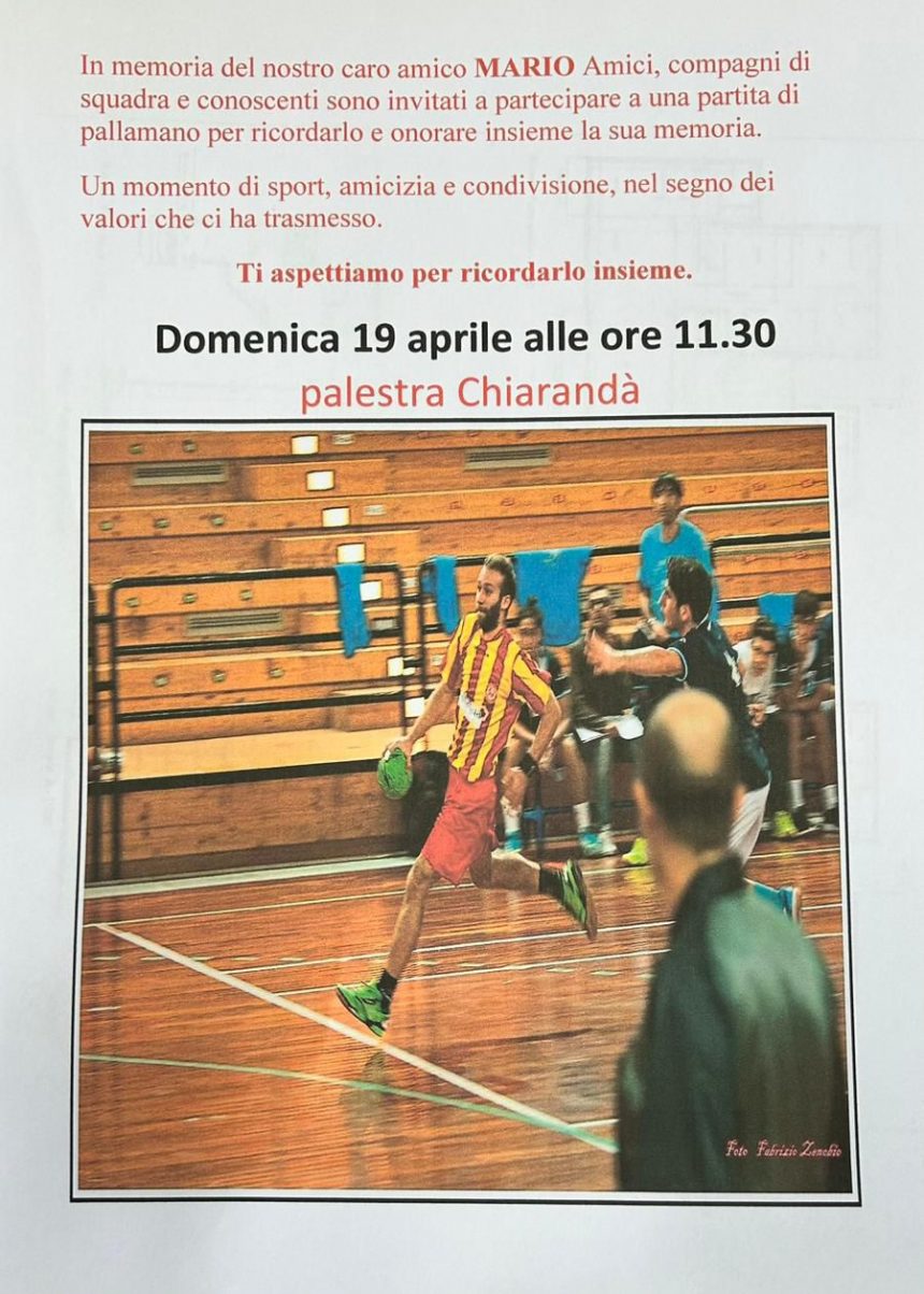 Tutti coloro che praticano ed hanno praticato lo sport, a qualsiasi livello, sanno perfettamente che c’è un connubio indissolubile fra sport e amicizia. E’ risaputo che è molto frequente che le amicizie che durano “una vita” nascono da giovani, tra compagni di squadra. Ed è proprio grazie a questo connubio che gli amici ed i compagni di squadra della Nova Audax, gloriosa squadra nissena di pallamano che ha militato in serie A2, hanno organizzato una partita di pallamano che si svolgerà domenica 19 aprile, alle ore 11:30, presso la palestra di via Chiarandà, in memoria del loro caro amico Mario Sicilia, per ricordarlo e per onorare insieme la sua memoria.