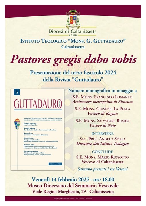 Eventi“Pastores gregis dabo vobis” numero speciale della rivista “Guttadauro” in omaggio ai Vescovi della Diocesi di Caltanissetta, presentazione il 14 febbraio Ultimo aggiornamento: Febbraio 7, 2025 9:47 am redazione 173 Views Condividere CONDIVIDERE TAGGED:Mons. Francesco LomantoMONS. GIUSEPPE LA PLACAMONS. MARIO RUSSOTTOmons. salvatore rumeopadre angelo spilla Condividi Questo Articolo Facebook Twitter Whatsapp Whatsapp Copy Link Print