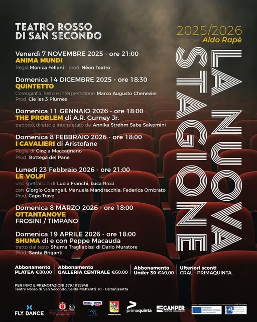 Il direttore artistico Aldo Rapè e direttori delle diverse “stagioni” che si alterneranno sulle tavole del palcoscenico del Rosso: Alessandra Falci, Michele Privitera, Michele Albano, e ancora Giovanni D’Aquila e Antonello Capodici, protagonisti di prestigiose collaborazioni, hanno presentato i cartelloni alla stampa il 17 settembre