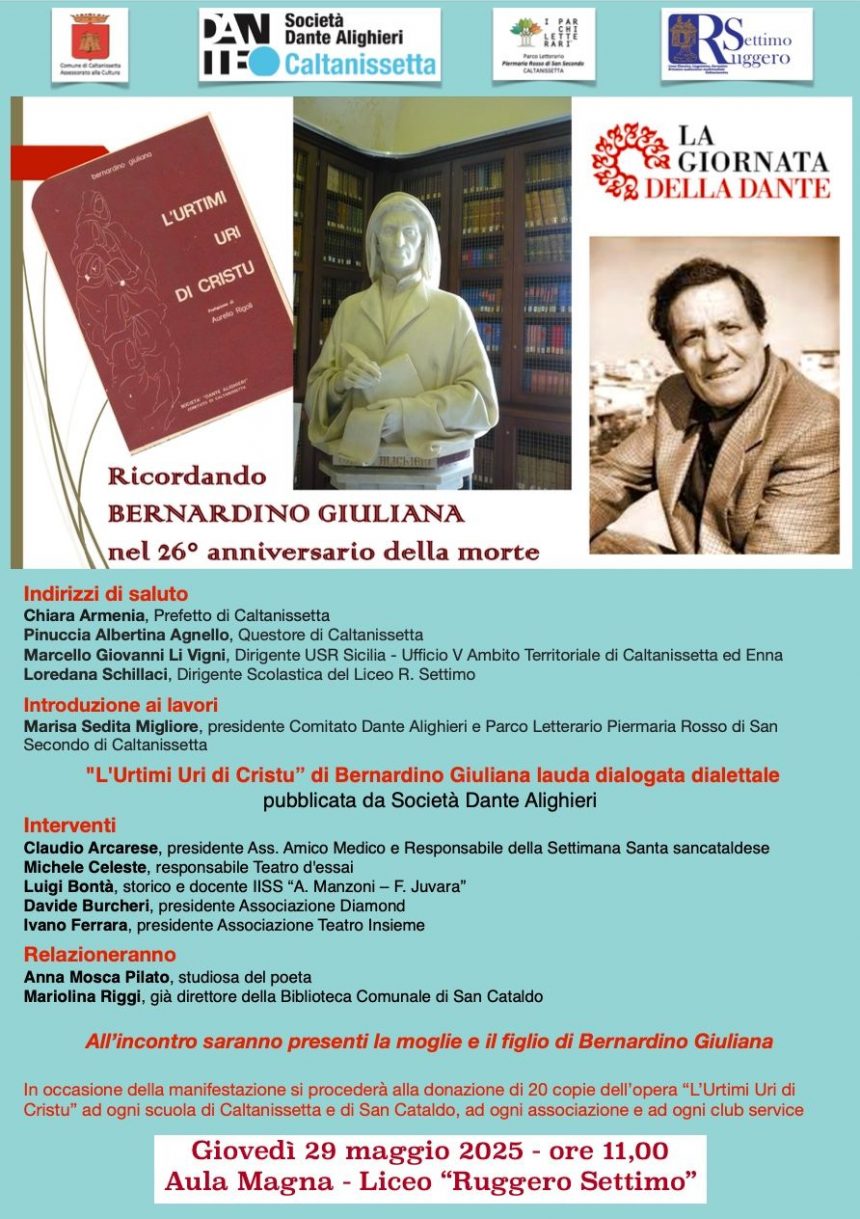 Cultura ed Eventi“Ricordando Bernardino Giuliana” al liceo “R. Settimo” il 29 maggio per la Giornata della Dante Ultimo aggiornamento: Maggio 28, 2025 2:15 pm redazione 302 Views Condividere CONDIVIDERE TAGGED:chiara armeniaClaudio ArcareseDavide BurcheriIvano Ferraraloredana schillaciLuigi BontàMarcello Li VigniMariolina RiggiMarisa Sedita Miglioremichele celestepinuccia albertina agnello Condividi Questo Articolo Facebook Twitter Whatsapp Whatsapp Copy Link Print