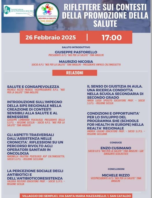 Eventi“Riflettere sui contesti di promozione della salute” convegno a S. Cataldo il 26 febbraio Ultimo aggiornamento: Febbraio 16, 2025 2:01 pm redazione 169 Views Condividere CONDIVIDERE TAGGED:Andrea GiugnoEnzo Cusimanogiuseppe lombardogiuseppe pastorelloMaria Luisa SpositoMarinella Faletramaurizio nicosiamichele rizzoValeria Mistero Condividi Questo Articolo Facebook Twitter Whatsapp Whatsapp Copy Link Print