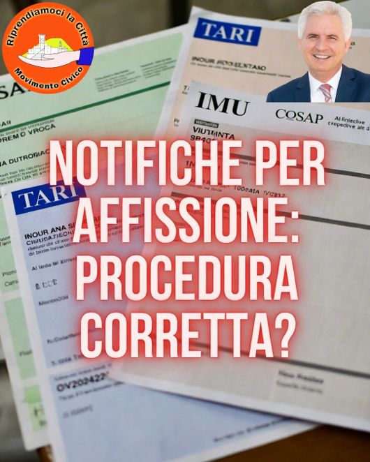 Il gruppo consiliare “Riprendiamoci la Città” ha rilevato che, ad esempio, in data 15 marzo 2024, il concessionario SO.G.E.T. S.p.A. ha trasmesso al Comune almeno nove comunicazioni, contenenti elenchi per un totale di oltre 250 notifiche, per le quali si dichiarava di procedere tramite affissione all’Albo Pretorio, motivando l’azione con la presunta “assenza nel Comune di una loro abitazione o ufficio o azienda“.