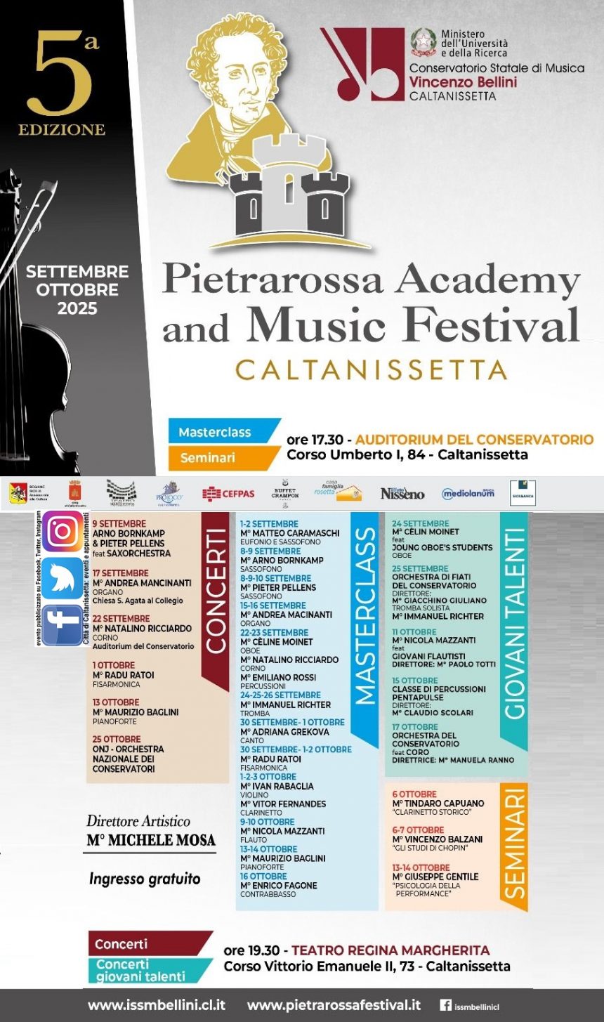 Undici Concerti, dodici Masterclass per tutti gli strumenti musicali e tre Seminari per la 5° edizione del Music Festival promosso dal Conservatorio “V. Bellini” di Caltanissetta diretto dal M° Michele Mosa.