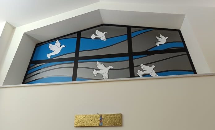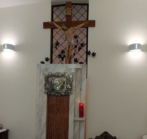 Oggi il colore delle vetrate è entrato anche nella piccola Cappella che custodisce il SS. Sacramento, dove si celebra solitamente nei giorni feriali, riaperta dopo mesi di chiusura per restauri a conclusione di una tre giorni di iniziative, con il pellegrinaggio parrocchiale in cattedrale per il Giubileo e l’assemblea parrocchiale conclusa con la Messa concelebrata dai sacerdoti della parrocchia domenica 21 settembre e terminata con la riapertura della Cappella.