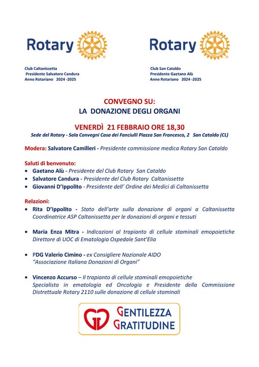 Cultura ed EventiS. Cataldo 21 febbraio: Convegno del Rotary Club sulla donazione degli organi Ultimo aggiornamento: Febbraio 19, 2025 2:42 pm redazione 198 Views Condividere CONDIVIDERE TAGGED:Gaetano AlùGiovanni D'IppolitoMaria Enza MitraRita D'IppolitoSalvatore Camillerivalerio ciminoVincenzo Accurso Condividi Questo Articolo Facebook Twitter Whatsapp Whatsapp Copy Link Print