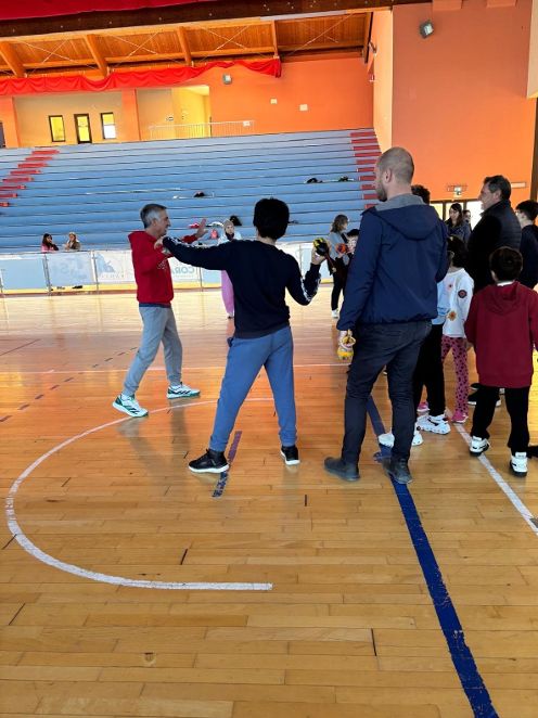 Da Settembre, grazie al trasporto con un pullmino acquisito in collaborazione con l’Associazione disabili, gli alunni si recano al Palasport per attività ludico-motorie.