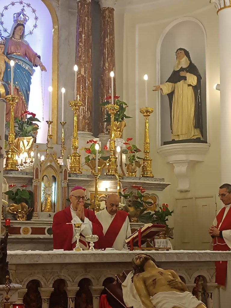 Dopo la processione del Cristo morto, traslato dalla chiesa di S. Lucia alla chiesa del Rosario restaurata e illuminata a festa, l’intera comunità parrocchiale, che con il suo impegno ha contribuito generosamente al restauro, ha vissuto un momento intenso di comunione e identificazione collettiva, insieme al parroco, padre Carmelo Sanguedolce, dopo mesi di decentramento nella chiesa del Purgatorio e nella Rettoria di S. Lucia, in attesa del completamento dei lavori..