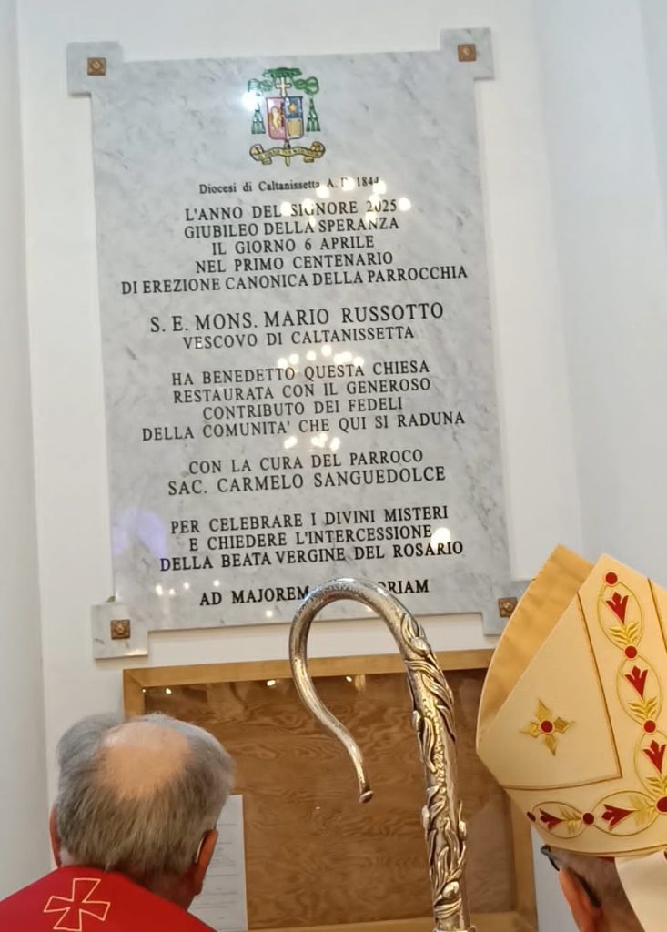 La parrocchia S. Maria del Rosario di S. Cataldo è in festa: il 6 aprile, nel centenario della sua elevazione a parrocchia, il vescovo mons. Mario Russotto ha celebrato solennemente la Messa e benedetto i lavori di restauro che, dopo tre mesi, l’hanno restituita al suo splendore.