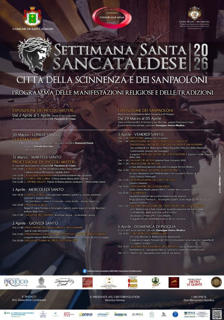 “Come ogni anno, San Cataldo accoglie una delle manifestazioni più sentite del territorio – ha evidenziato il sindaco Gioacchino ComparatoLa Settimana Santa è un momento identitario che unisce religione, cultura e tradizione, rafforzando il legame della comunità con le proprie radici. Quest’anno la rassegna si arricchisce di novità artistiche e progetti inclusivi, confermando il ruolo della città come punto di riferimento per i Sanpaoloni in Sicilia”.