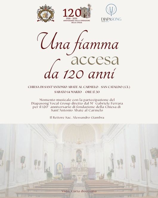Tra gli eventi in programma si inserisce il momento musicale dal titolo “Una fiamma accesa da 120 anni”, che si terrà sabato 14 marzo alle ore 17.30 nella Rettoria di Sant’Antonio Abate al Carmelo.
