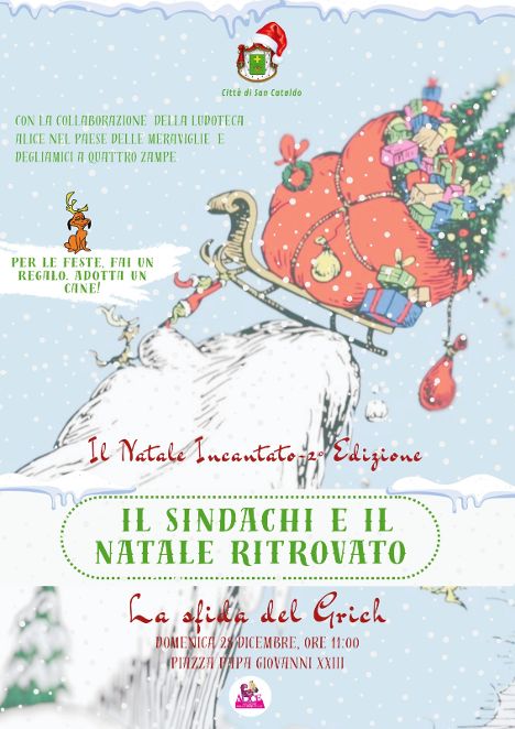 La seconda edizione de “Il Natale Incantato” si terrà domenica 28 dicembre alle ore 11:00 in Piazza Papa Giovanni XXIII. Questo evento, con il sottotitolo “Il Sindachi e il Natale Ritrovato,” promette di ridare vita alla magia del Natale con “La sfida del Grich”. Un evento che coinvolgerà tutta la comunità in un’atmosfera festosa e ricca di tradizioni natalizie.