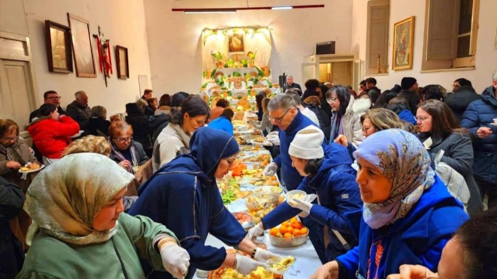 Un tempo le tavolate nascevano nelle case, nei cortili, tra le mura della quotidianità. Oggi quella stessa tradizione si apre, si allarga, respira un’aria nuova proprio negli spazi ogni giorno deputati al sacro.
