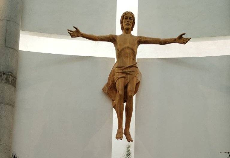 Sicuramente oggi la chiesa di San Marco ha un’architettura controversa. Sin dalla sua costruzione ha diviso l’opinione dei fedeli: c’è chi la considera una “tenda” moderna, accogliente e soprattutto funzionale, e chi invece ritiene che la sua forma rimandi a tutto tranne che a una chiesa. All’interno, vi si trovano la Madonna dei Sette Dolori, opera sivigliana, una piccola Madonna Immacolata, e il simulacro in cartapesta di San Marco, ritrovato dal primo parroco in un vecchio scantinato in stato di abbandono e poi restaurato con cura. Dietro l’altare centrale si erge oggi un grande Crocifisso risorto sospeso su i muri tagliati a croce: un Cristo giovane e luminoso che, pur mantenendo la forma del crocifisso, sembra accogliere chiunque entri nel suo abbraccio.