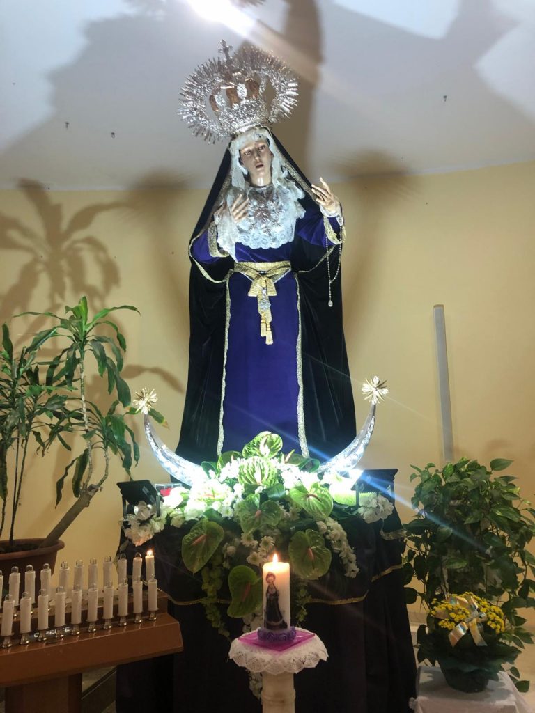 Era inverno. Padre Giuseppe cominciò a girare, a bussare alle porte, a parlare con le famiglie, a conoscere volti e storie. Poi trovò tre garage in fila, uno accanto all’altro, inaccessibili alle macchine, e decise di affittarli con i pochi soldi che aveva. Iniziò così a dare forma a un sogno: acquistò un piccolo altare, un tabernacolo, una statua di Gesù Bambino e un crocifisso. Due immagini così diverse — il Dio che nasce e il Dio che muore — ma unite da uno stesso amore.