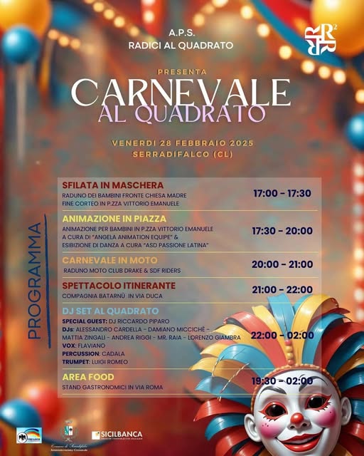 EventiSerradifalco 28 febbraio: full immersion nel Carnevale per tutte le età Ultimo aggiornamento: Febbraio 27, 2025 7:38 pm redazione 249 Views Condividere CONDIVIDERE Condividi Questo Articolo Facebook Twitter Whatsapp Whatsapp Copy Link Print