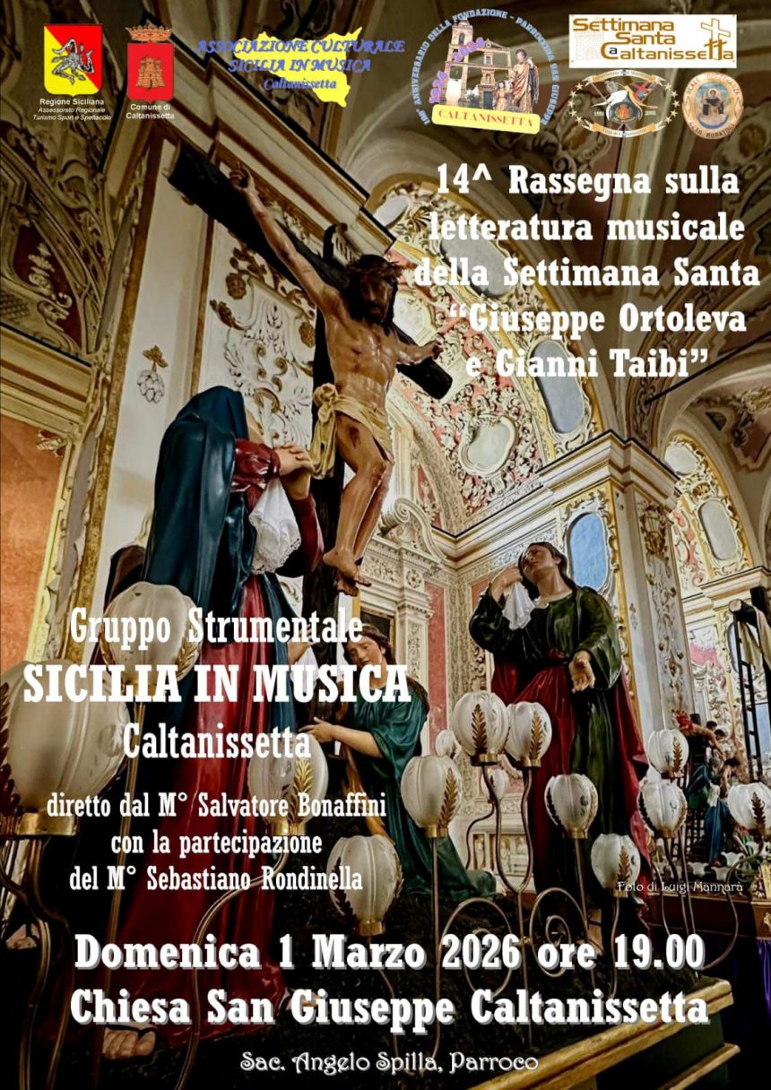E’ la chiesa di San Giuseppe, nel centro storico di Caltanissetta, ad ospitare la 14° edizione della Rassegna sulla letteratura musicale della Settimana Santa “Giuseppe Ortoleva e Gianni Taibi”, per ricordare due grandi fautori e testimonial della Settimana Santa , che hanno contribuito a promuovere in tutta Italia e nel mondo.