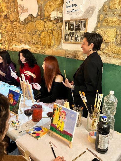Durante “Sorsi d’Arte”, un gruppo di 20 partecipanti avrà l’opportunità di immergersi in un’esperienza diretta con la tela e i colori, ognuno con il proprio cavalletto, sotto la guida esperta dell’artista Valentina Mistretta, che accompagnerà ogni partecipante nel processo creativo.