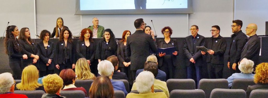 Ad aprire e accompagnare l’incontro sono state le raffinate esibizioni, in tre diversi momenti, della corale Diapasong, diretta dal maestro Gabriele Ferrara, che ha creato un’atmosfera suggestiva e coinvolgente, preparando il pubblico presente a un viaggio tra arte e riflessione. La speranza è stato il filo conduttore dell’incontro.