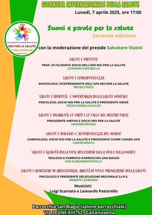 Per sollecitare l’attenzione dei cittadini e degli operatori sul diritto alla salute, l’APS il 7 marzo proporrà la seconda edizione dell’evento “Suoni e parole per la salute”; gli interventi dei relatori riguarderanno la salute, il benessere e la qualità della vita secondo prospettive diverse e saranno focalizzati su alcuni temi che costituiscono in atto anche gli ambiti di intervento dell’Associazione: la disabilità, la salute mentale e la promozione della salute.