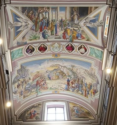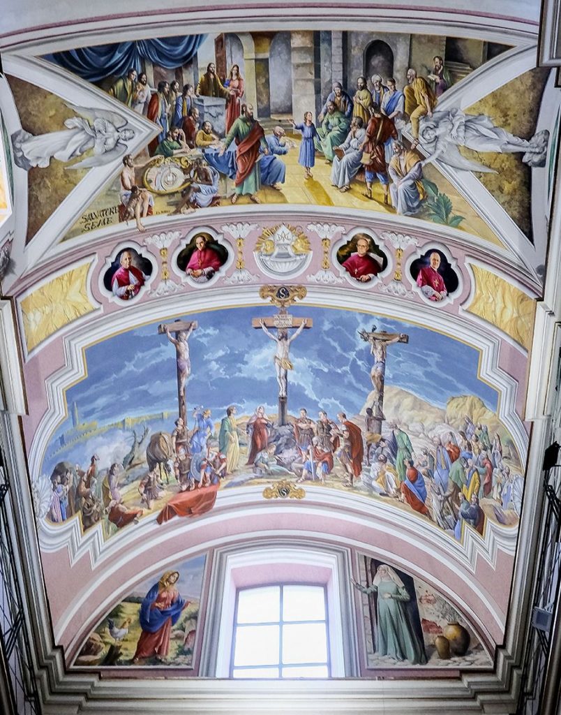 Al centro delle tre sezioni una fascia con i medaglioni dei ritratti degli otto vescovi che si sono succeduti alla guida della diocesi nei 180 anni della sua storia, a incardinare nella storia della Chiesa locale la maestosità dell’iconografia, mai fine a se stessa. Fra i ritratti ci sono anche le insegne episcopali: la mitria, la croce e il pastorale, e sulla mitria è stata dipinta l’Ave Maria, “come a sottolineare che il ministero del vostro vescovo e il destino del nostro popolo è nelle mani di Maria, l’insegna della Madonna, che ispira, conduce, incoraggia, sospinge i pastori di questa diocesi e con essi tutto il popolo di Dio” ha spiegato il Vescovo Mario nella sua omelia.