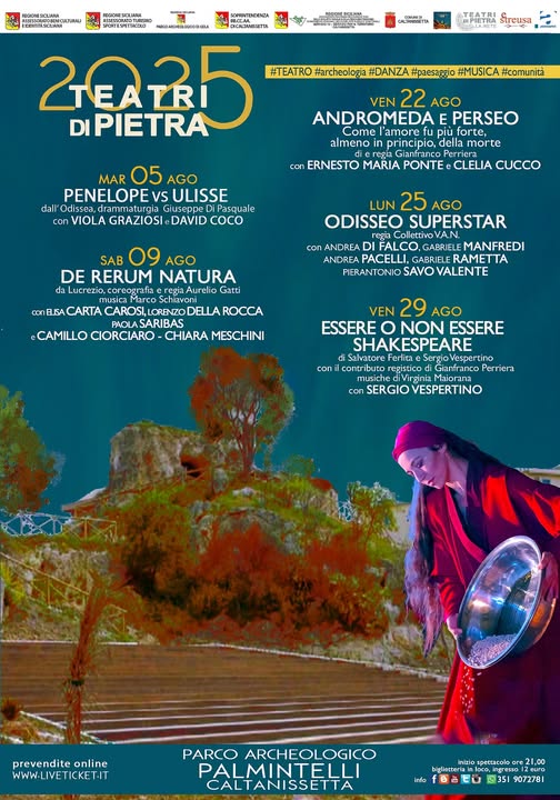 Terzo appuntamento con “Teatri di Pietra” al Parco Archeologico Palmintelli di Caltanissetta: venerdì 22 agosto alle 21 “Andromeda e Perseo” con Ernesto Maria Ponte e Clelia Cucco con la regia di Gianfranco Perriera.